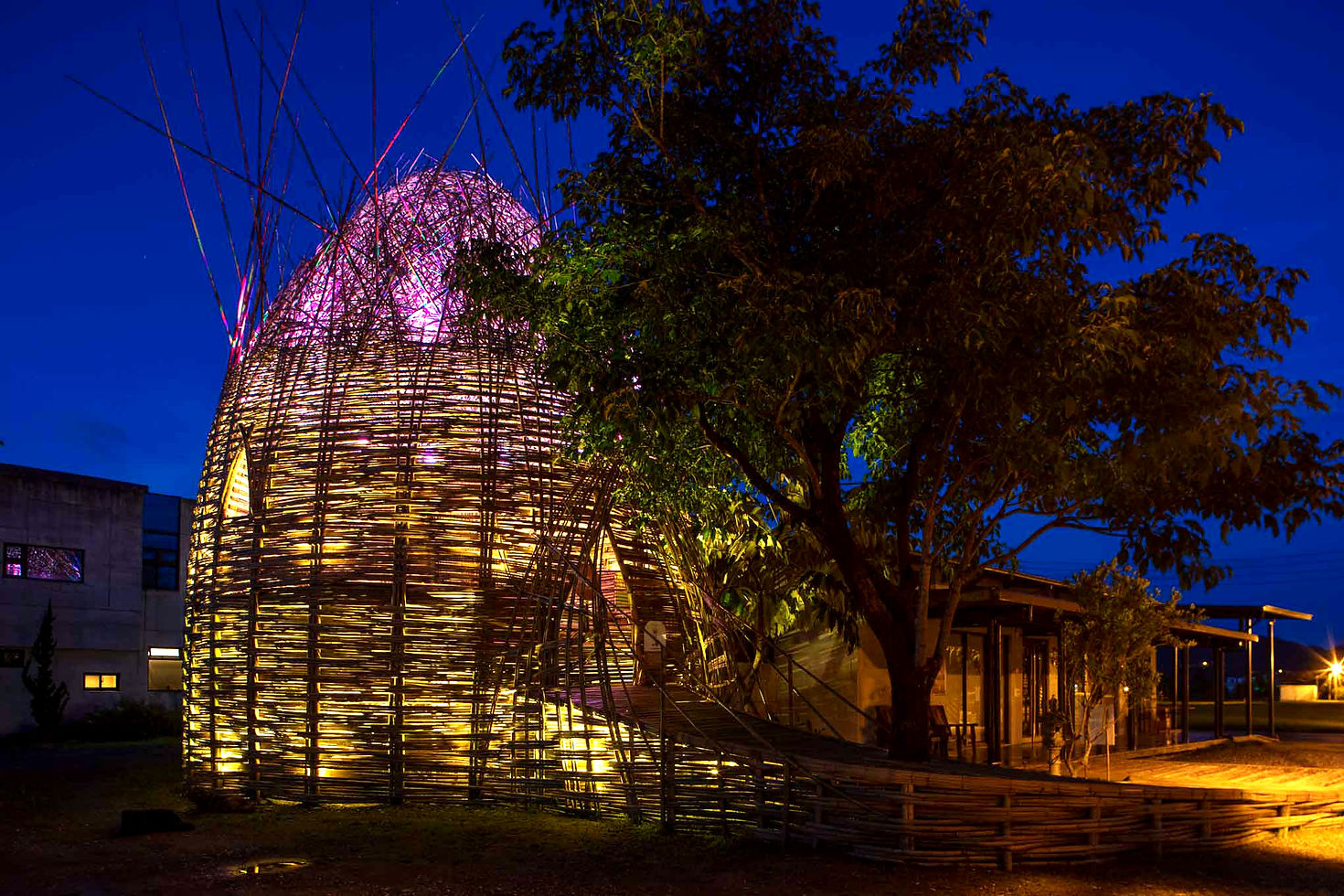 記得,那一年的作品很特別,《CampBoo 竹夢・築夢》它不是在美術館旁邊、也不是大型國際藝術祭參展,而是在花蓮的在地品牌《美好花生》旁的空地上誕生的作品。